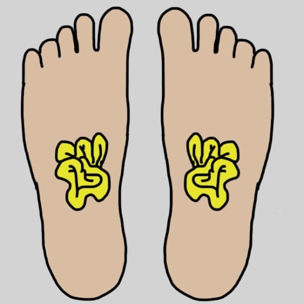 Kelių skausmas ir nuovargis nuimamas masažuojant išorinę kiekvienos pėdos pusę.