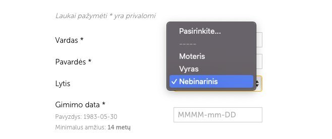 O štai, prieš perkant bilietus į renginius Kauno dramos teatro internetinėje svetainės registracijos formoje galima pasirinkti ne tik moters ar vyro, bet ir nebinarinę lytinę tapatybę. Tiesa, tai neprivalomas laukelis norint užsiregistruoti.