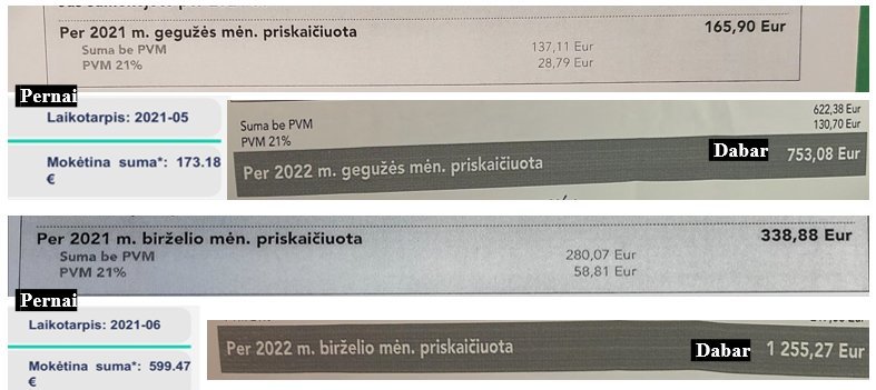 2021 m. birželį ji mokėjo 938,35 euro, o šiais metais 1 kW jau kainavo 28 centus ir sąskaita atėjo su keturženkliu skaičiumi – net 1255,27 euro.