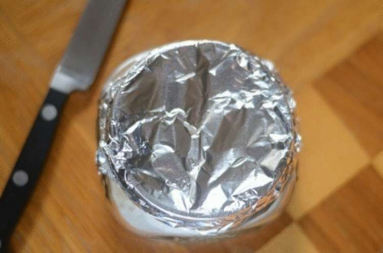 Pripildykite stiklainį maždaug ¼ kepimo sodos. Įlašinkite 8 lašus eterinio aliejaus. Dabar uždenkite stiklainį skylėtu dangteliu arba folija, taip pat su skylėtomis. Jei oro gaiviklis bus rodomas, geriausia pasirinkti patrauklų stiklainį ir dangtelį. Atlikta!