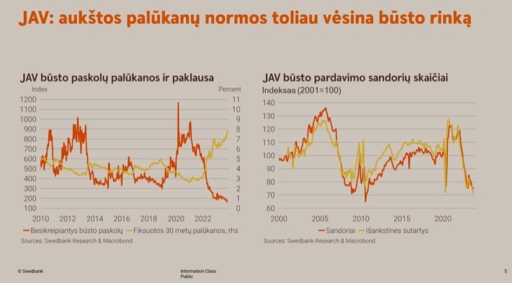 „Besikreipiančių būsto paskolų JAV yra mažiausiai per pastarąjį ketvirtį amžiaus. Turbūt natūralu, kai per 10-metį pripranti prie palūkanų normų, kurios siekia 1,5–2 proc., o tada jos pašoka iki 8 proc.