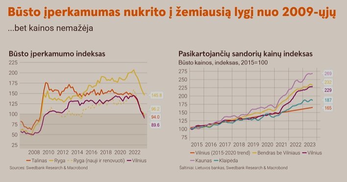 „O kuo išsiskiria Lietuva? Kitaip nei daugelis Europos Sąjungos valstybių, nepaisant sumažėjusių sandorių skaičiaus, sumažėjusio įperkamumo, NT kainos išlieka rekordinėse aukštumose ir beveik nesumažėjo.