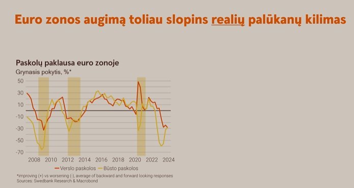 Ekonomistas pastebi, kad ECB vis dar žiūri į praeitį, vis dar kalba apie infliaciją. Euro zona – 2 metus stagnacijoje, kai kurios valstybės – giliame nuosmukyje.