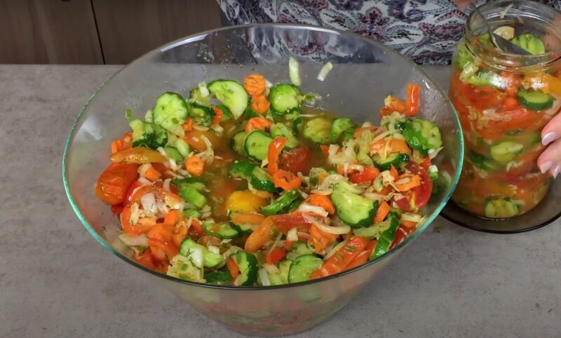 Pavyzdžiui, yra marinuotų salotų, kurias galima laikyti stiklainyje. Jos negenda, atrodo reprezentatyviai ir yra skanios.