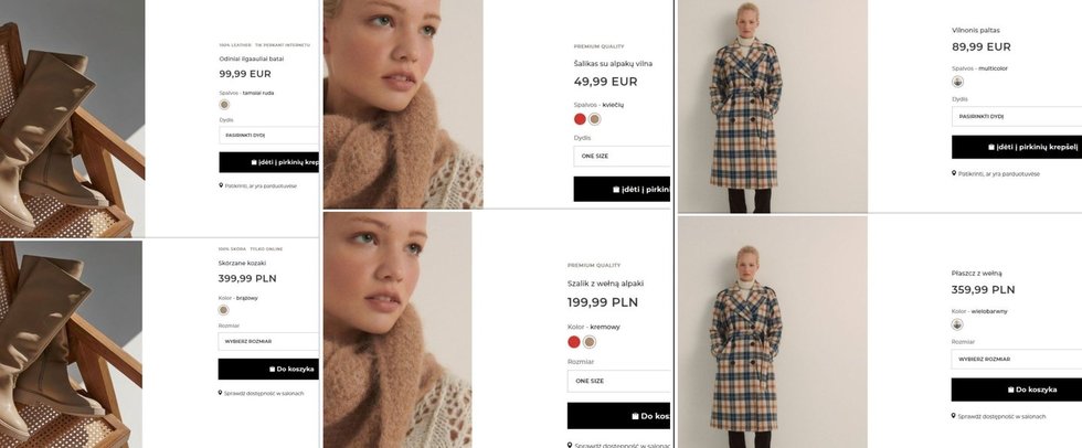 „Vėl prisiminiau tą pačią parduotuvę, palyginau kainas Lietuvoje ir Lenkijoje ir vėl nustebau kad jos skiriasi. Štai vilnonis paltas Lietuvos parduotuvėje kainuoja 89,99 euro, o Lenkijoje 359,99 zlotų, t. y. 74,7 euro. Skirtumas 15 eurų. Odiniai batai irgi toje pačioje parduotuvėje pigesni, Lietuvoje jie kainuoja 99,99 euro, o Lenkijoje – 399,99 zlotų, t. y. 83 eurus. Skirtumas beveik 17 eurų. Dar patikrinau ir šaliko kainą. Vilnonis šalikas Lietuvoje kainuoja 49,99 euro, o Lenkijoje – 199,99 zlotų, t. y. 41,5 euro. Skirtumas 8,49 euro.