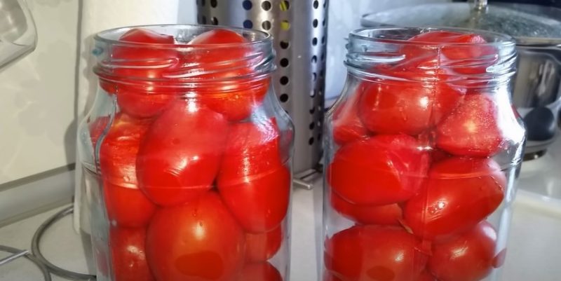 Švariose skardinėse mes dedame pomidorus, su nupjautu peduncle.