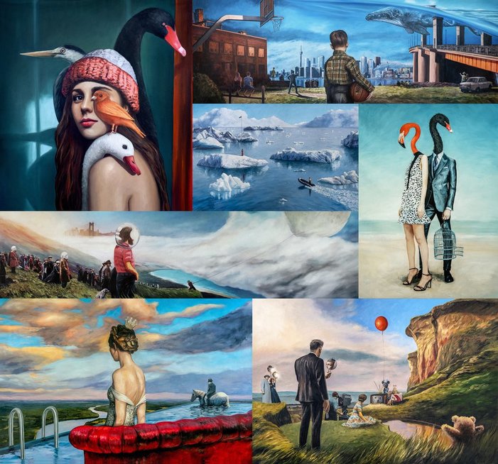 „Jis sėdi ant žirgo, tas žirgas ten kalnuose virš debesų, ant kalno viršūnės, o vietoj žirgo galvos ten žuvies galva tokia didžiulė. Toksai siurrealistinis, crazy kažkoks darbas, kaip aš savo stiliumi ir darau. Tik tiek, kad ten tas personažas yra tas žmogus konkrečiai.
