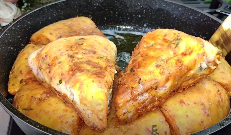 Keptuvėje įkaitinkite augalinį aliejų ir ant paviršiaus sudėkite tešlos gabalėlius. Kepkite kiekvieną gabalėlį ant vidutinės ugnies iš abiejų pusių iki auksinės rudos spalvos.