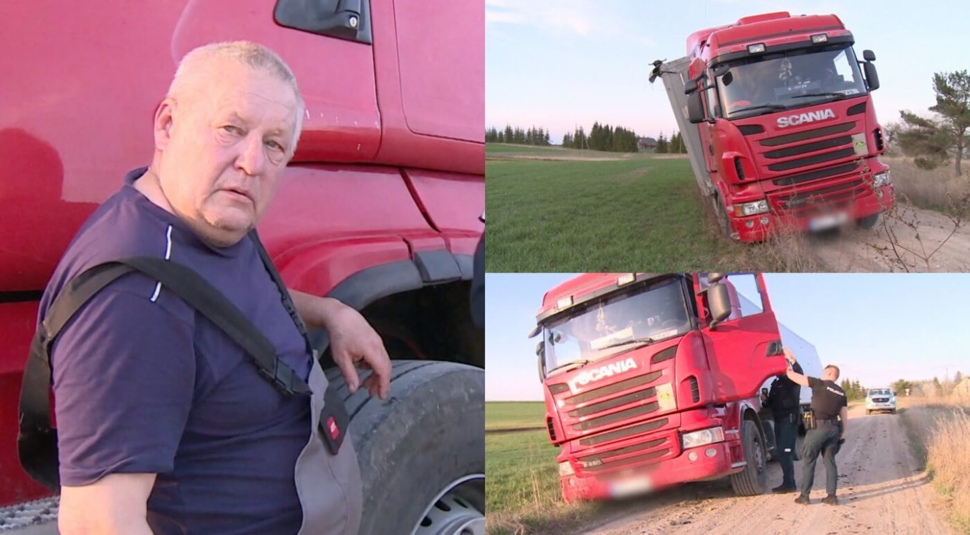 Privažiavus arčiau pastebėta, kad vilkikas ir puspriekabė pavojingai pasvirę, rodos, tuoj nusivers į pievą. Vairuotojas vis dar stengėsi išvažiuoti iš griovio, tačiau nesėkmingai. Vyriškis tikino, kad nėra vartojęs svaigalų ir kaip įrodymo pradėjo ieškoti piniginės su dokumentais.