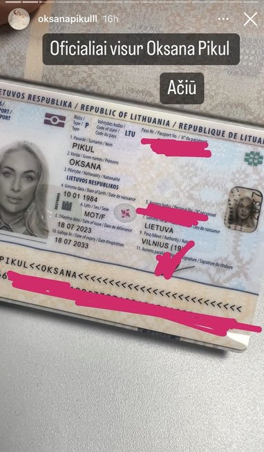 Su krepšininku Simu Jasaičiu (41 m.) besiskirianti dainininkė ir verslininkė Oksana Pikul (39 m.) turi kuo pasidžiaugti – ji oficialiai pasikeitė pavardę ir rankose laiko naujus asmens dokumentus.