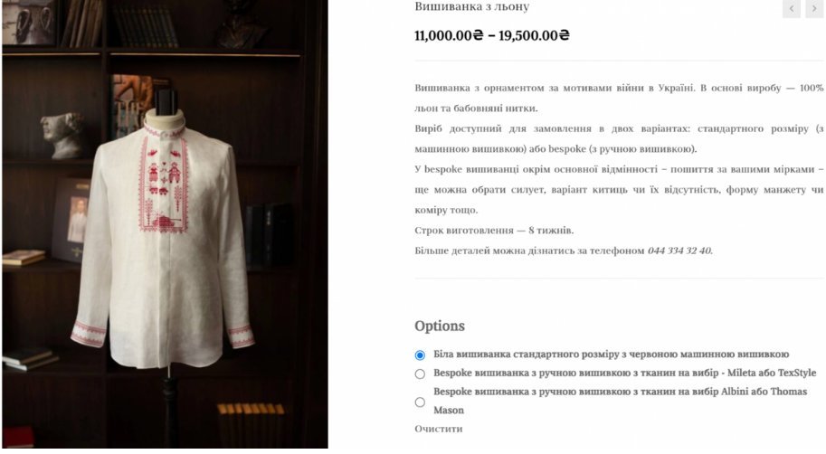 Yra žinoma, kad tokius siuvinėjimus gamina Ukrainos prekės ženklas Indposhiv, o dizainą sukūrė baltarusių menininkė Rufina Bazlova.
