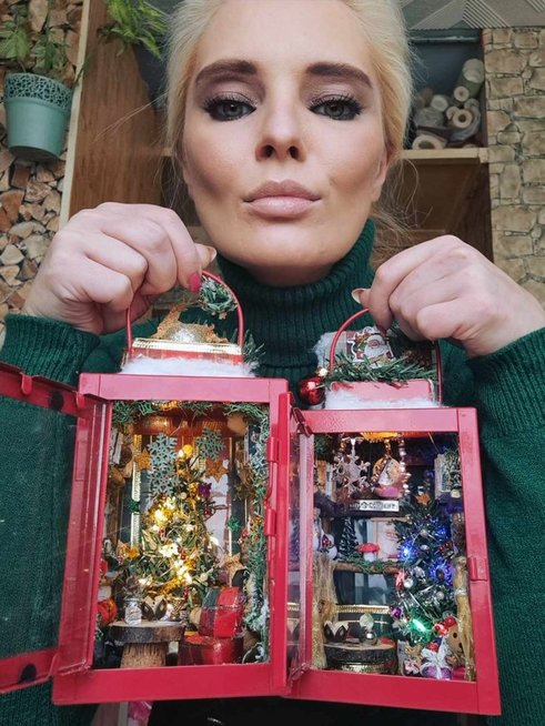 Kalėdiniams namukams pati darau kalėdinius papuošimus: girliandas, vainikus, dovanas, senius besmegenius ir net pačią eglutę. Lemputes pati perku, tai pagrindinis namuko akcentas – tai jog naktį jį galima įjungti ir būtent tada atsiskleidžia visas jo grožis“, – su meile apie savo gaminamus namukus pasakoja Jekaterina Rimantė.
