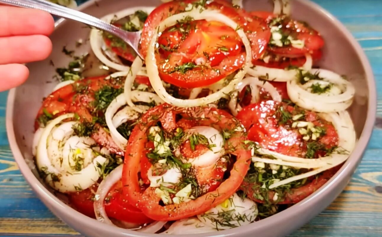 Pomidorai marinate – tai ryškus ir gaivus užkandis, kuris puikiai tinka prie kebabo, sustiprina mėsos skonį ir suteikia patiekalui subalansuotą rūgštingumą bei pikantiškumą.