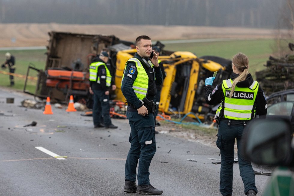 Avarijos vietoje dirba gausios pareigūnų pajėgos. Transporto eismas uždarytas abejomis kryptimis.