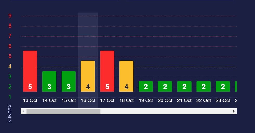 Prognozuojama, kad padidėjęs magnetinio lauko aktyvumas bus ir rytoj bei poryt. Spalio 17 dieną magnetinės audros stiprumas sieks penkis balus.