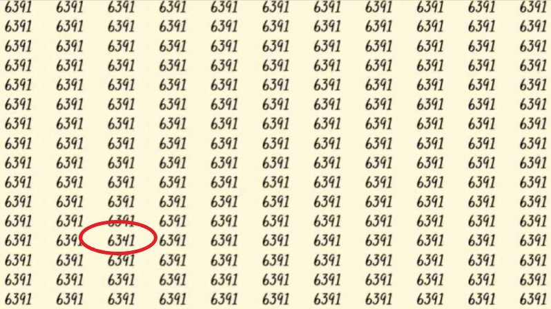 Jūsų užduotis – pastebėti kitokį pasislėpusį skaičių. Nustatykite laikmatį 10 sekundžių ir išbandykite savo jėgas, ar pavyks rasti skaičių 6341.