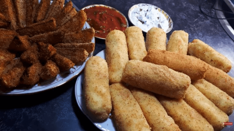 Paimame tyrę dalimis, darome plokščią pyragą, dedame dešrą į vidų, pabarstome sūriu ir užspaudžiame kraštus. Apvoliokite džiūvėsėliuose ir kepkite augaliniame aliejuje.