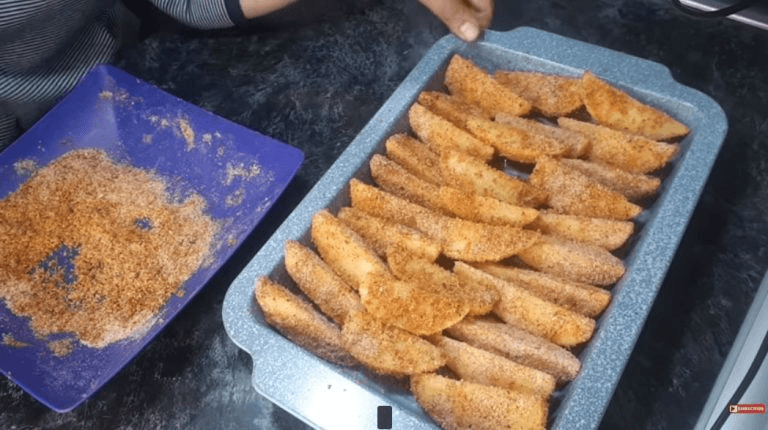 – džiūvėsėliai ir augalinis aliejus.