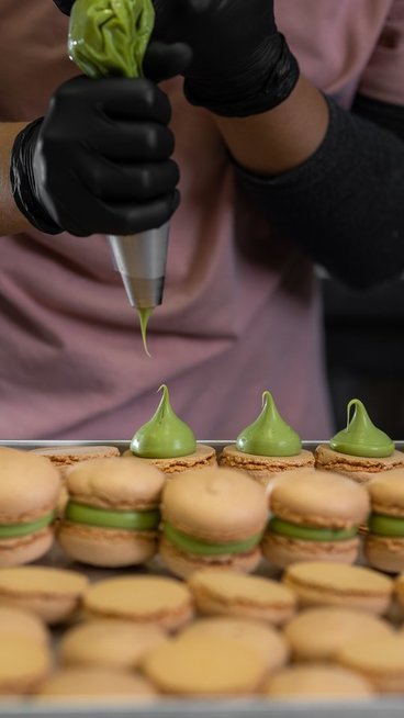 Macarons sausainių gamyba – daug atidumo reikalaujantis darbas