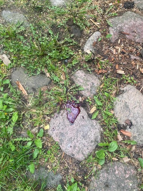 Moteris pasakoja, kad po briedžio apsilankymo jų kieme liko kraujo dėmių, kurias vėliau teko valyti. Nors tiksliai nežinia, ar briedis jau buvo susižeidęs, kai užklydo į jų kiemą, ar susižeidė ten, tačiau moteris aiškina, kur, tikėtina, jis galėjo susižeisti.