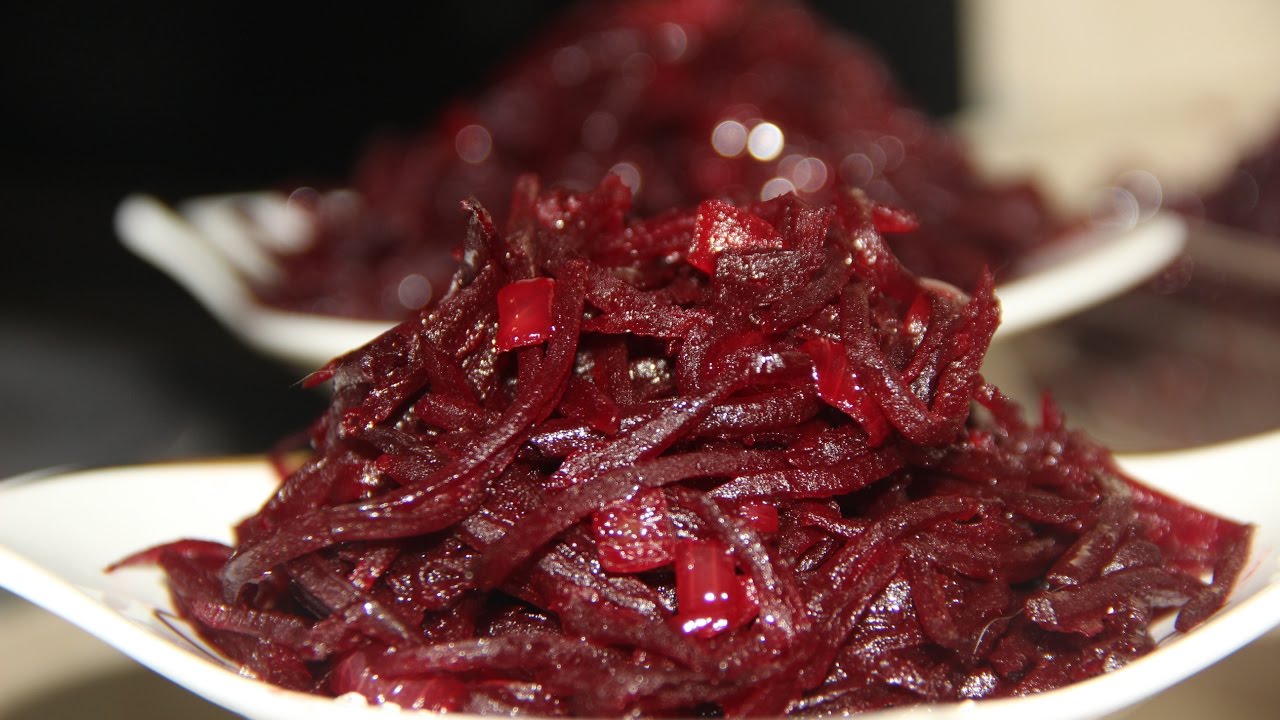 Pradėkime nuo pačių įprasčiausių, sveikiausių ir paprasčiausių salotų, pagamintų iš žalių burokėlių. Šias salotas galima paruošti per kelias minutes, o jų skonis puikiai tiks prie bet kokių pietų ar net vakarienės. Patiekite šį lengvą patiekalą su riebia mėsa, kad pagerintumėte virškinimą.