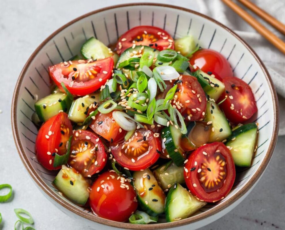 Korėjietiški pomidorai – tai spalvingas ir sodrus patiekalas, kuriame sultingi pomidorai įgauna visiškai naują skambesį dėl marinato iš česnakų, acto, pipirų ir žolelių. Skirtingai nei klasikinėse salotose, šie pomidorai yra trumpai marinuojami, todėl išlieka švieži, bet įgauna aštrų skonį. Recepto pagrindą sudaro prinokę, bet tankios konsistencijos pomidorai, kurie supjaustomi dideliais griežinėliais ir užpilami sodriu marinatu…