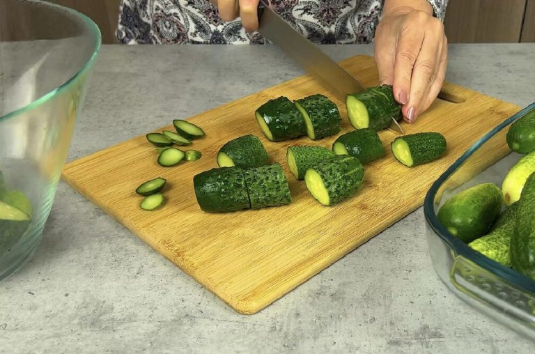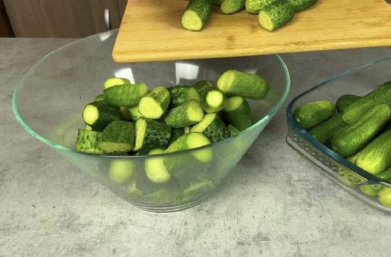 Pirmiausia agurkus dvi valandas pamirkau vandenyje. Tada, nuplovus ir nukirpus galiukus iš abiejų pusių, supjaustau juos dideliais gabalėliais. Mažus agurkus perpjaunu pusiau.