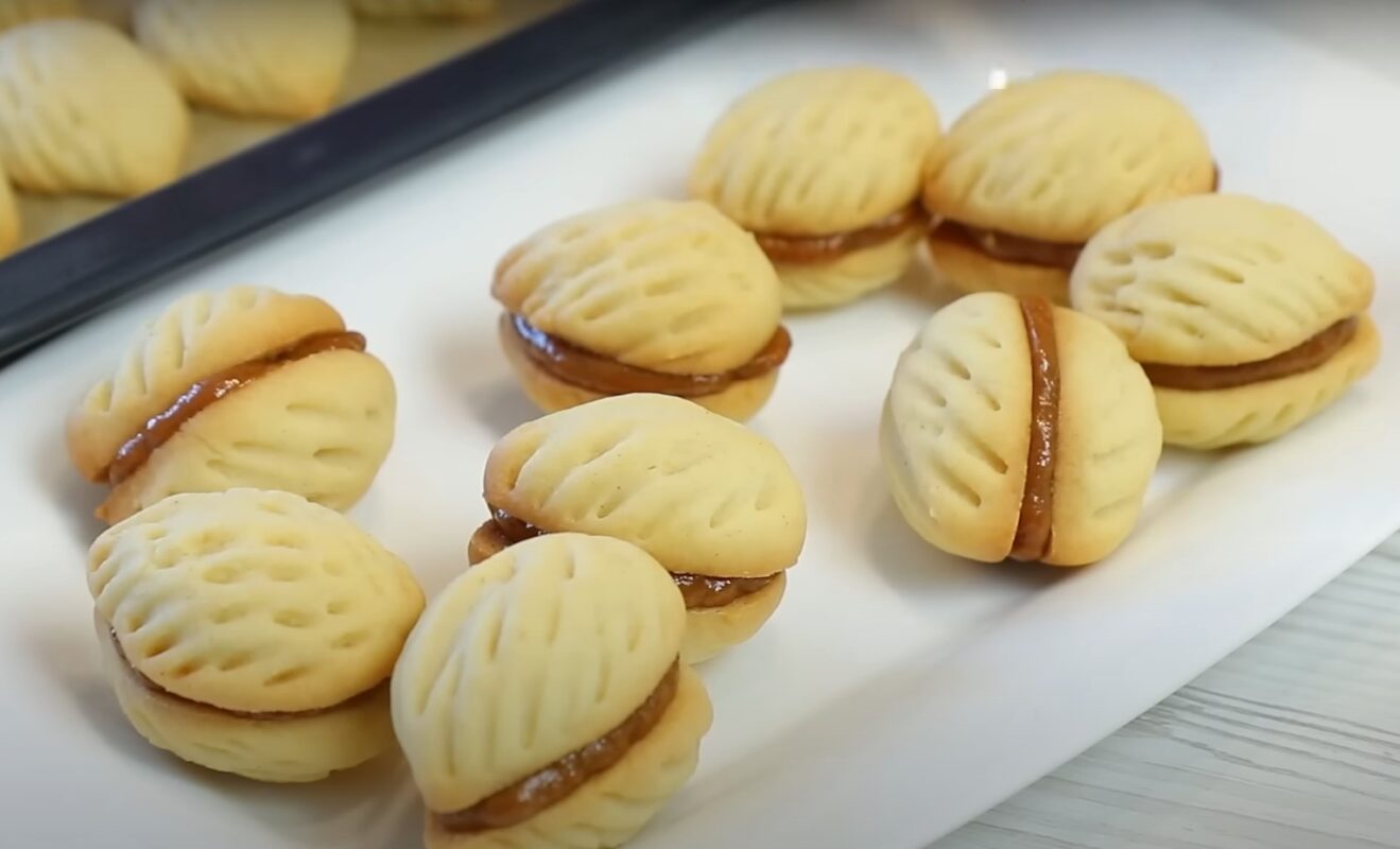 Gausite paprastus sausainius „Peanut” su virintu sutirštintu pienu. Sausainius iš trapios, minkštos tešlos taip pat galima derinti su šokolado pasta, glajumi ir kitais įdarais.